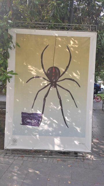 بلوار کشاورز این روزها تعدادی پوستر در نقد جشنواره کن به نمایش گذاشته که هرچند ساده اما این رویداد و به ویژه فیلم «عنکبوت مقدس» را مورد انتقاد قرار داده است.
