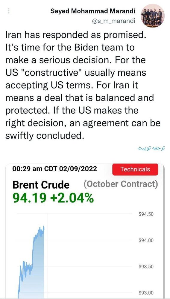 محمد مرندی ، مشاور تیم مذاکره ایران نوشت :