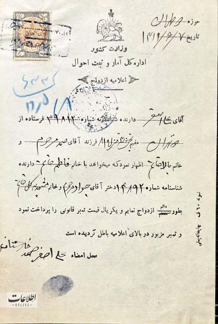 سند ازدواج ۹۰سال پیش این شکلی بود!