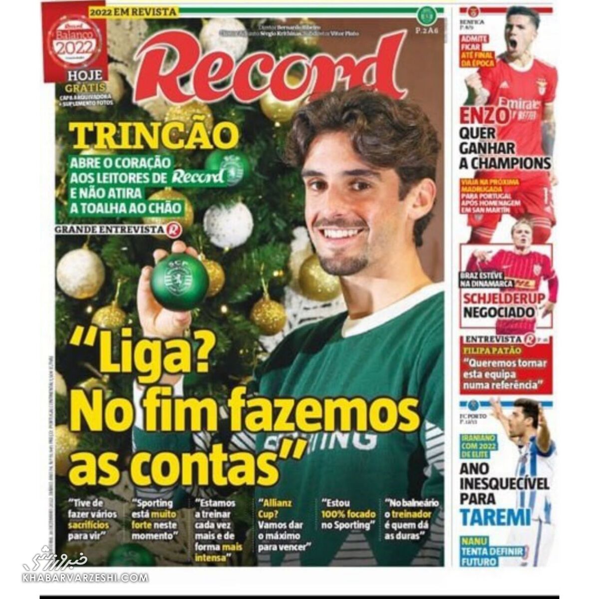 نشریه رکورد که به نوعی هوادار تیمهای اسپورتینگ و بنفیکا است، امروز بخشی از جلد خود را به ستاره پورتو اختصاص داد تا مهدی طارمی دوباره مورد تمجید قرار گیرد.