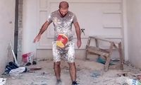 یک مرد در اقدامی از سطل رنگ به عنوان توپ استفاده کرده و مشغول به روپایی زدن شد.