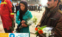 دانشآموزان شينآبادی براي ابراز همدردی در محل حادثه پلاسکو حاضر شدند.