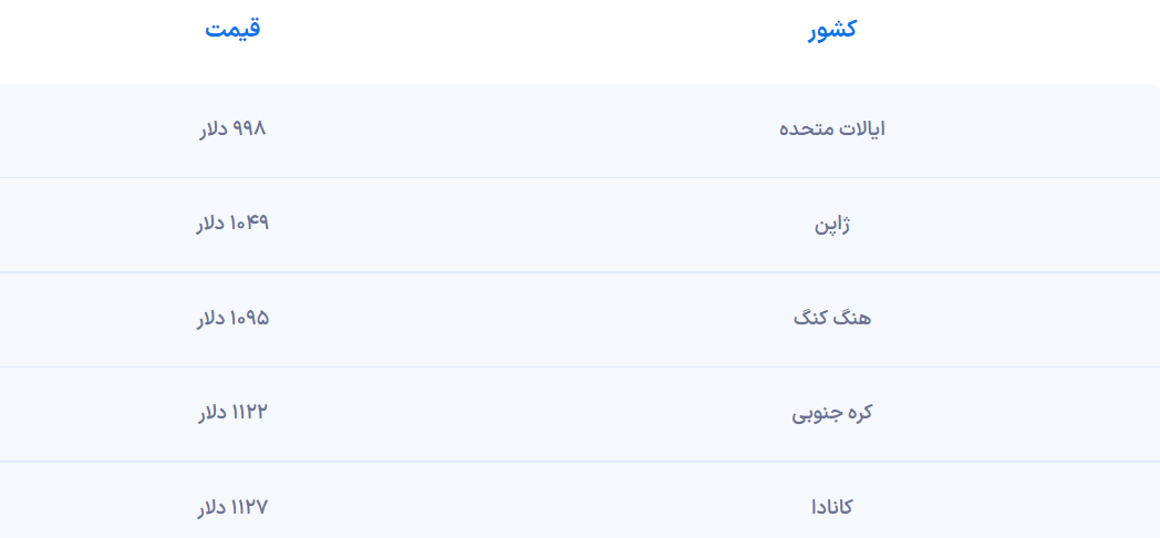 در جدول زیر، ارزانترین کشورهایی که میتوانید در آنها یک آیفون ۱۴ پرو ۱۲۸ گیگابایتی تهیه کنید، آمده است: