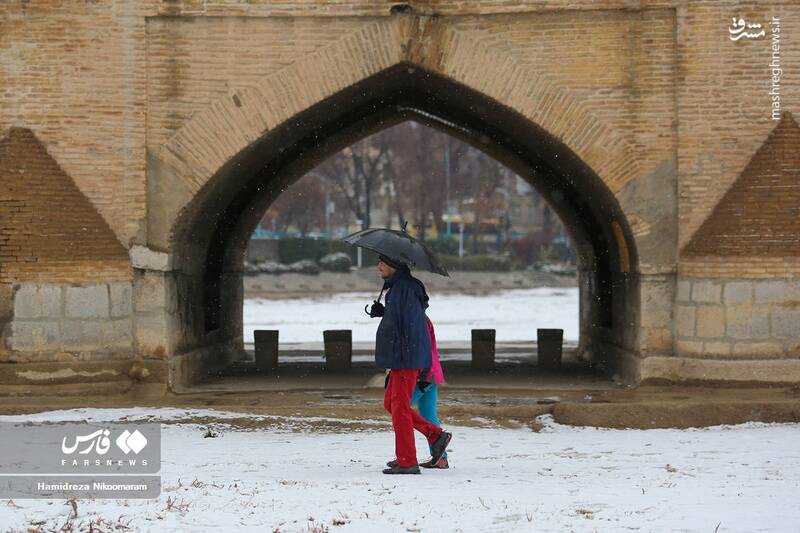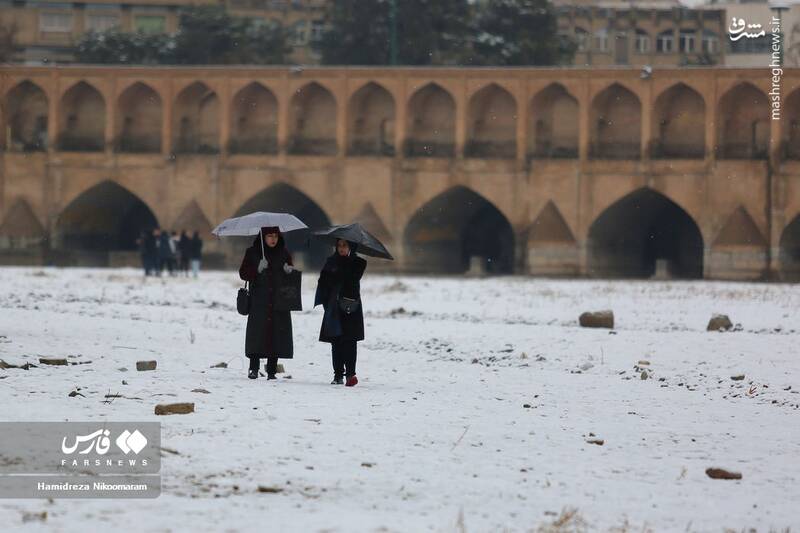 مشرق: از صبح امروز بارش برف در اصفهان زیبایی خاصی به این شهر بخشید. تصاویری از زایندهرودِ برفی را ببینید.