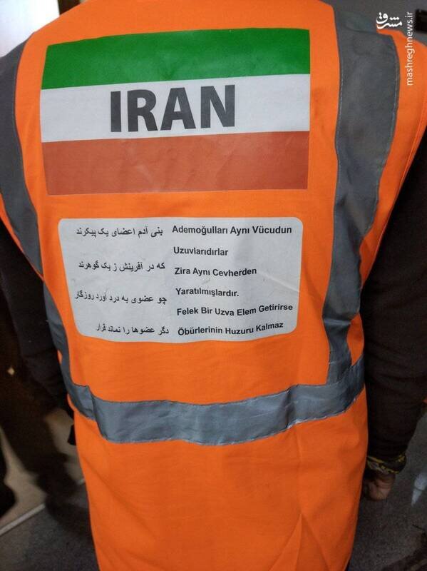 همشهری آنلاین: روی کاور امدادگران داوطلب ایرانی در زلزله مهیب ترکیه شعری از گلستان سعدی نوشته شده است که مفهومی انسان دوستانه دارد.