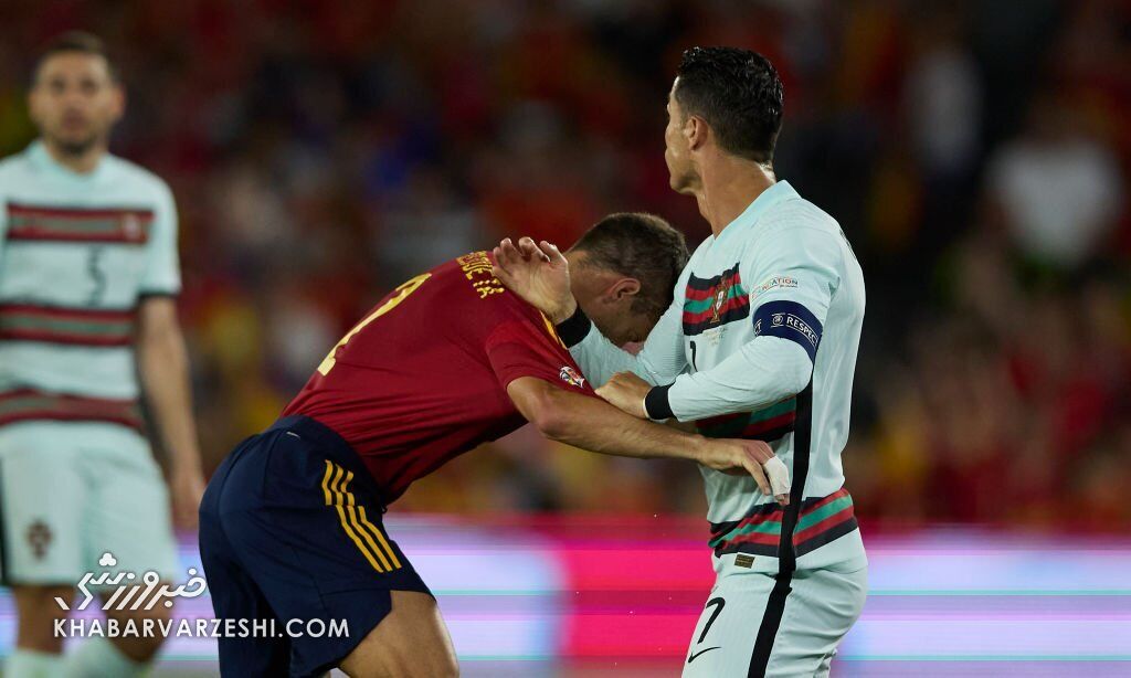 کریستیانو رونالدو، کاپیتان تیم ملی پرتغال با سزار آسپلیکوئتا، مدافع باتجربه تیم ملی اسپانیا درگیر شد.