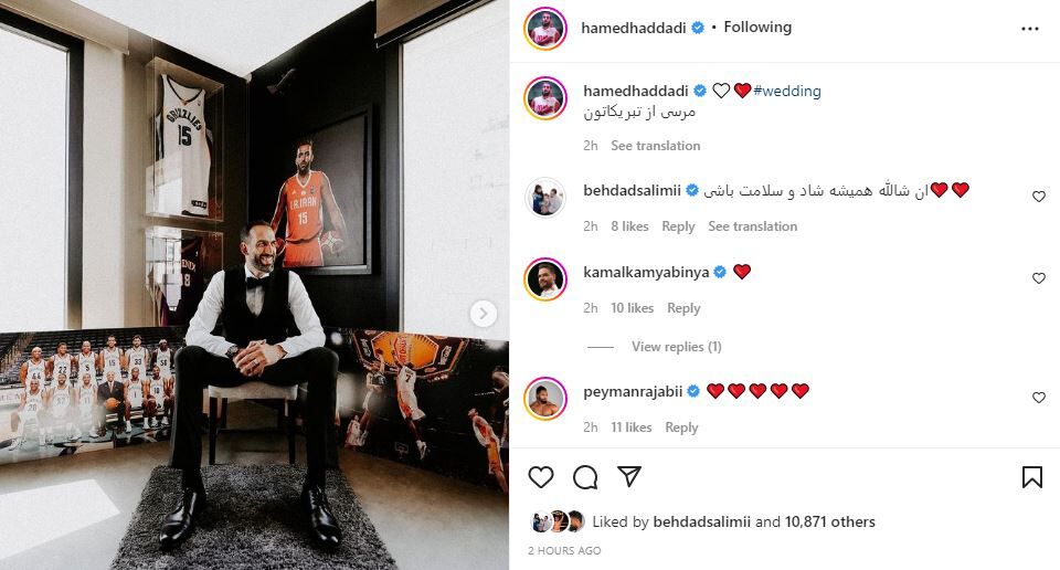 برترینها: حامد حدادی، کاپیتان تیم ملی بسکتبال به جرگه متاهلین پیوست. نکته جالب توجه در عکسی که او به مناسبت ازدواجش منتشر کرده، تم بسکتبالی است!