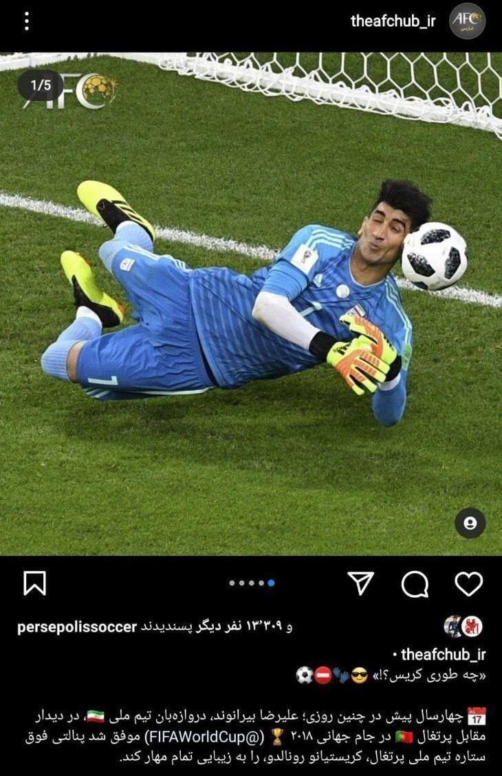 صفحه فارسی AFC به همین مناسبت پستی از مهار پنالتی رونالدو توسط بیرانوند منتشر کرد.