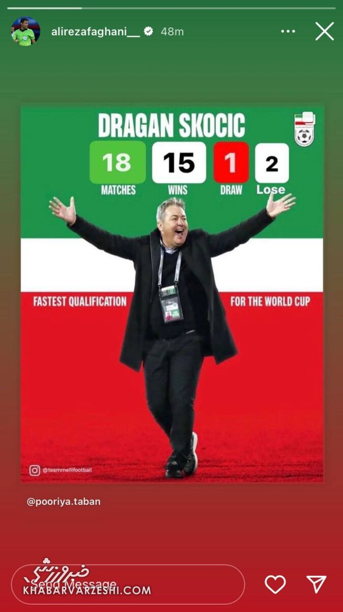 علیرضا فغانی داور بینالمللی ایران با انتشار یک استوری از اسکوچیچ حمایت کرد.