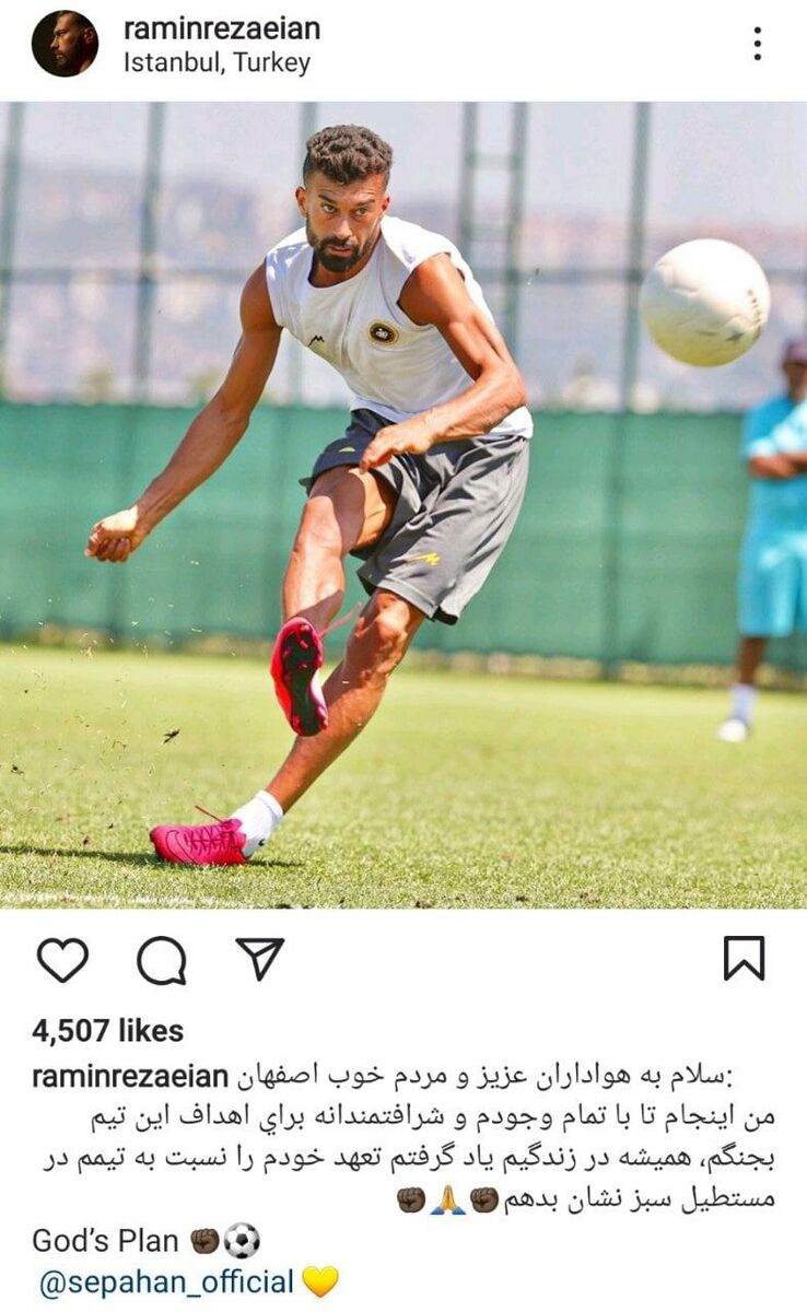 برترینها: رامین رضاییان مدافع جدید سپاهان با انتشار پیامی خطاب به هواداران این تیم، از انگیزه زیادش برای فصل جدید گفت.