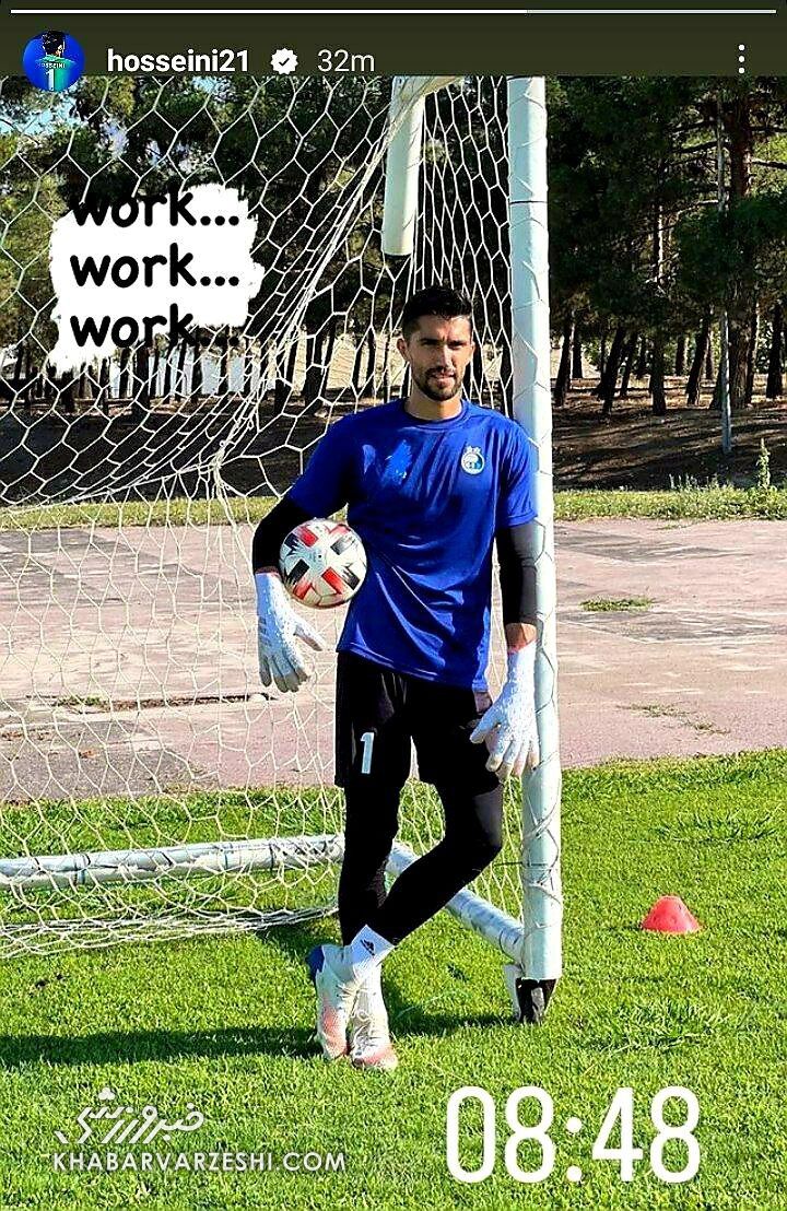 سیدحسین حسینی گلر و کاپیتان استقلال در روزی که ساپینتو به بازیکنانش استراحت داده به تمرینات اختصاصی خود پرداخته است.