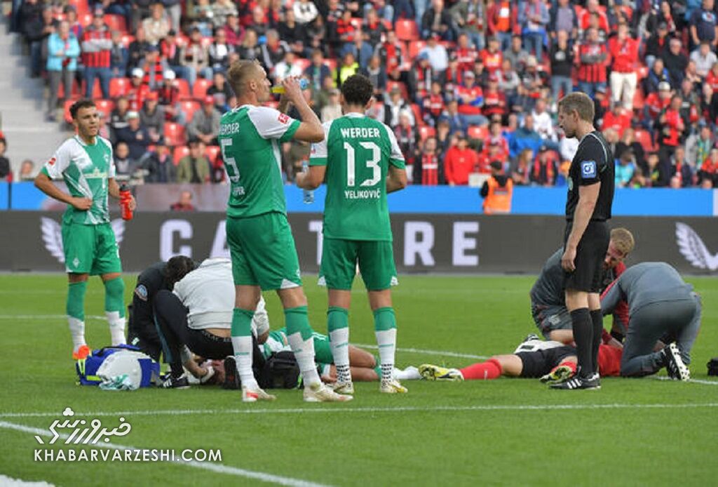سردار آزمون و نیکولاس فولکروگ در برخوردی شدید از ناحیه سر دچار مصدومیت شدند و بازیکن وردربرمن از ناحیه سر با شکستگی نیز مواجه شد.