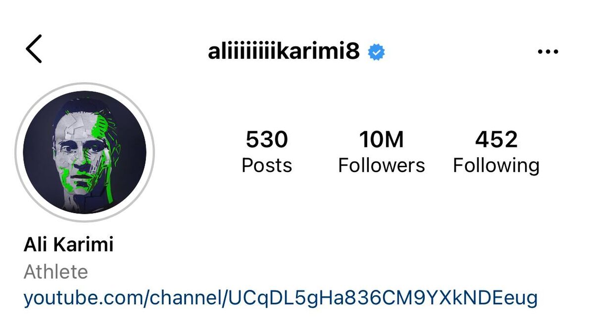 در مجموع امروز علی کریمی به یک رکورد خاص در فضای مجازی رسید و صفحه اینستاگرام او، ۱۰ میلیونی شد.