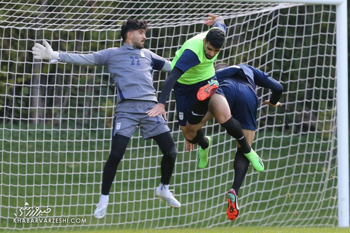 ورزش سه: آخرین تمرین تیم ملی پیش از جدال با سنگال با ثبت عکس جالبی پایان یافت. همانطور که میبینید مهدی طارمی در تیم سبز و سیدمجید حسینی در تیم سرمهای حضور دارند. در یک صحنه که سانتری بر روی دروازه سرمهای انجام میشود طارمی برای تبدیل آن به گل و حسینی برای دفع توپ همزمان به هوا میپرند و در همین لحظه به پای هم میپیچند. صحنهای که امیر عابدزاده نفر سوم آن است و برای حفاظت از دروازهاش، پرش بلندی روی هوا داشته.