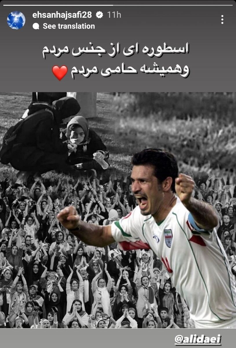 برترینها: بعد از اتفاقات اخیر و حواشی به وجود آمده، بسیاری از اهالی فوتبال با انتشار استوری هایی به حمایت از علی دایی پرداختند. جدیدترین نفر هم احسان حاج صفی است که استوری زیر را برای علی دایی به اشتراک گذاشته است.