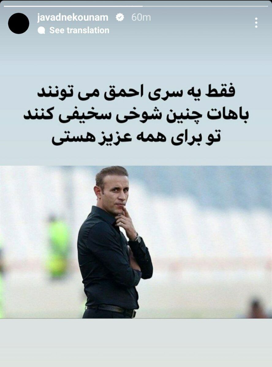 جواد نکونام سرمربی فولاد خوزستان با انتشار یک استوری از یحیی گل محمدی حمایت کرد.