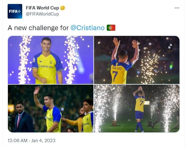 توییتر فیفا با انتشار پستی نوشت «یک چالش جدید برای کریستیانو» و به این اتفاق بزرگ برای رونالدو و عربستانیها واکنش نشان داد.