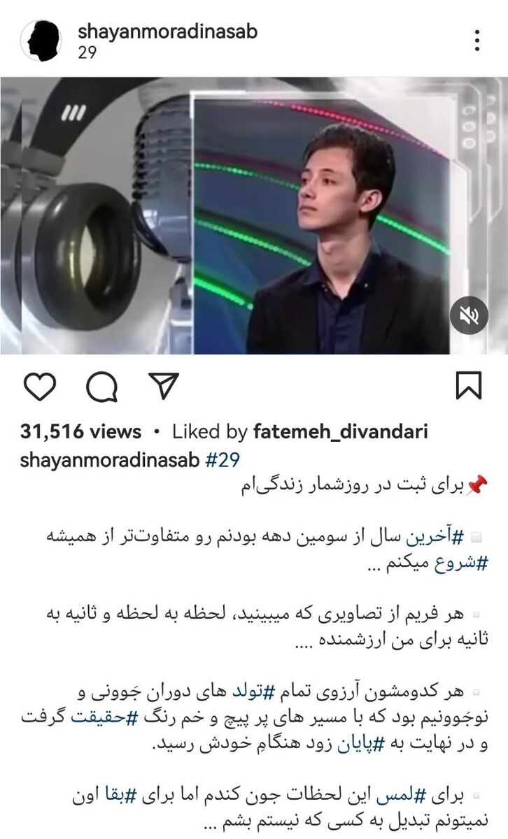 خبرورزشی: شایان مرادی نسب گزارشگر جوان صدا و سیما که در سالهای اخیر همکاریاش را با تلویزون و برنامه فوتبال برتر آغاز کرده بود، با انتشار یک ویدیو در صفحه شخصی خود از پایان همکاریاش با صدا و سیما خبر داد و در این خصوص نوشت: