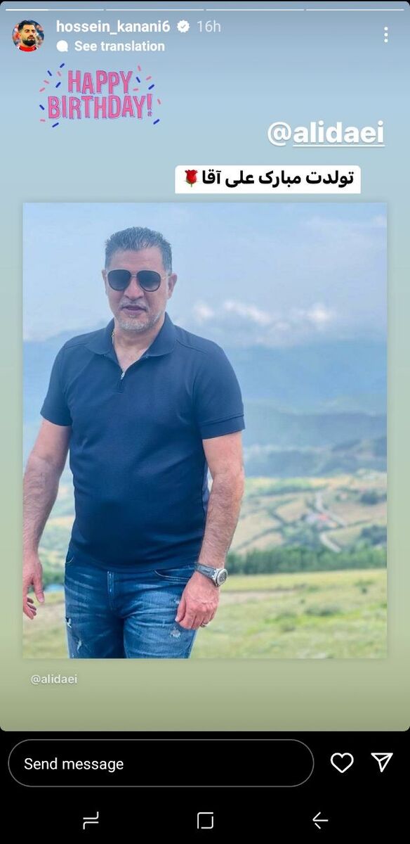 مدافع ملی پوش با انتشار یک استوری در صفحه شخصی اش تولد علی دایی را تبریک گفت.