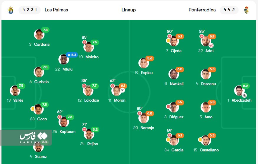 همشهریآنلاین: در چارچوب هفته بیست و نهم لیگ دسته اول اسپانیا، شب گذشته پونفرادینا به مصاف لاسپالماس رفت و با نتیجه ۲ بر صفر شکست خورد.
