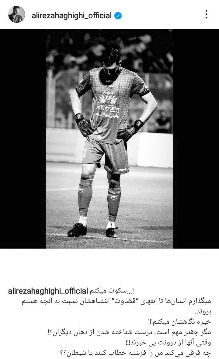 حقیقی نیز که از اتهامات پس از بازی مقابل پرسپولیس دلگیر شده در واکنش به حواشی اخیر پست جدیدی را در صفحه شخصیاش در فضای مجازی منتشر کرده است.