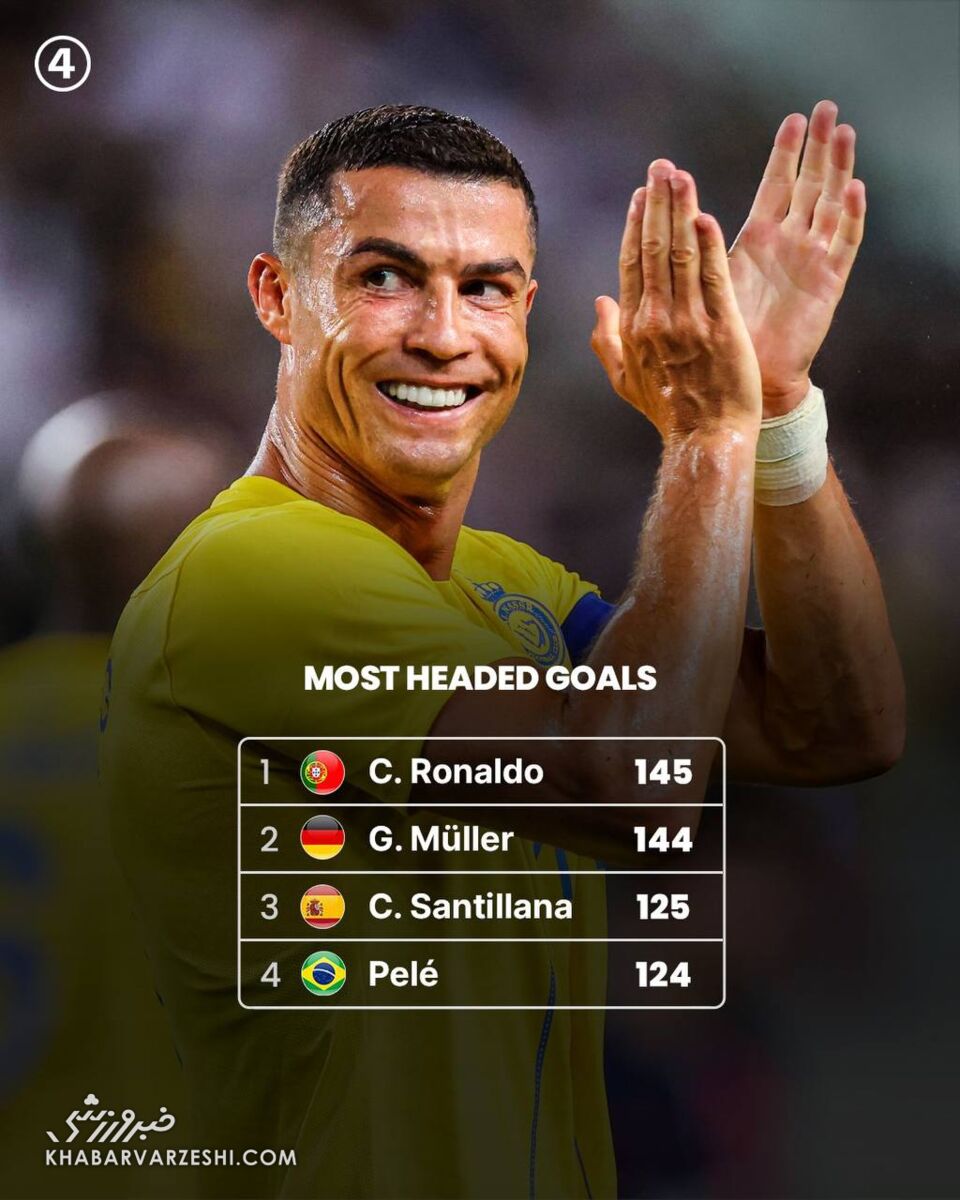 نکته جالب این آمار اختلاف بسیار زیاد لیونل مسی با کریستیانو رونالدو است. مسی در حال حاضر تنها ۲۴ گل را با ضربه سر به ثمر رسانده.